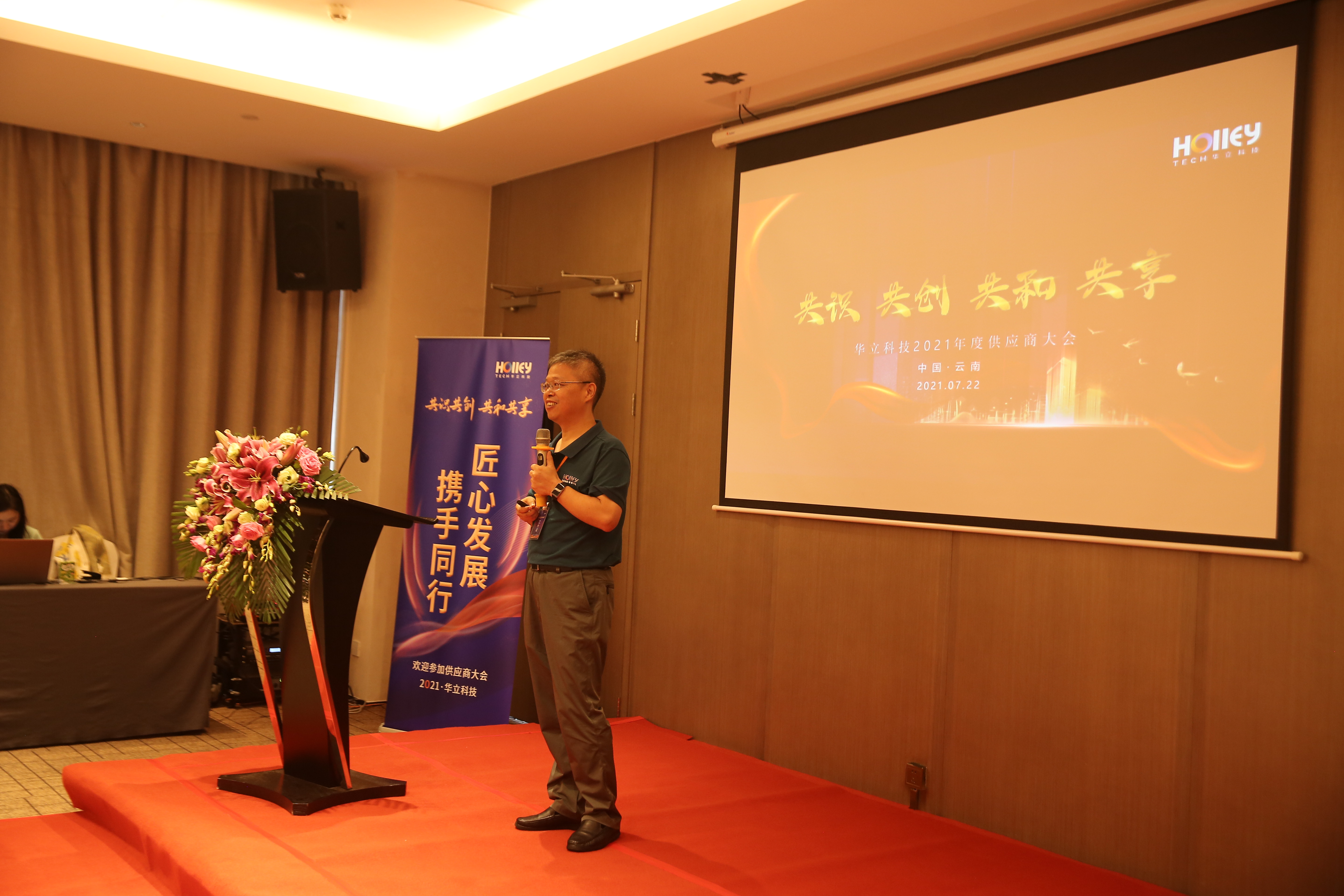 Apre sa, Prezidan Cheng nan rapò l 'yo, prezante bay founisè yo sou planifikasyon an nan nouvo faktori Holley Teknoloji a tankou manifakti a entelijan baz Chongqing ak dezyèm faz la nan Qingshan Lake, kòm byen ke plan an operasyon nan lavni. In his presentation, he stated that “Holley Technology forms its development goals around the optimization of the supply chain system and strengthens the diversified layout of overseas markets. Holley Technology cannot improve its product quality requirements without the strong support of its partners. In the future, in the face of limited resources and market challenges, it is more necessary to strengthen the depth of cooperation with our supplier partners, expand the value of both sides, achieve mutual success and realize a win-win cooperation sitiyasyon ”.